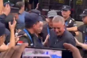 7月26日晚上,巴乔和卡洛斯乘车来到贵州榕江村超现场,下车时球迷欢呼声震耳欲聋,现场气氛瞬间被点燃。